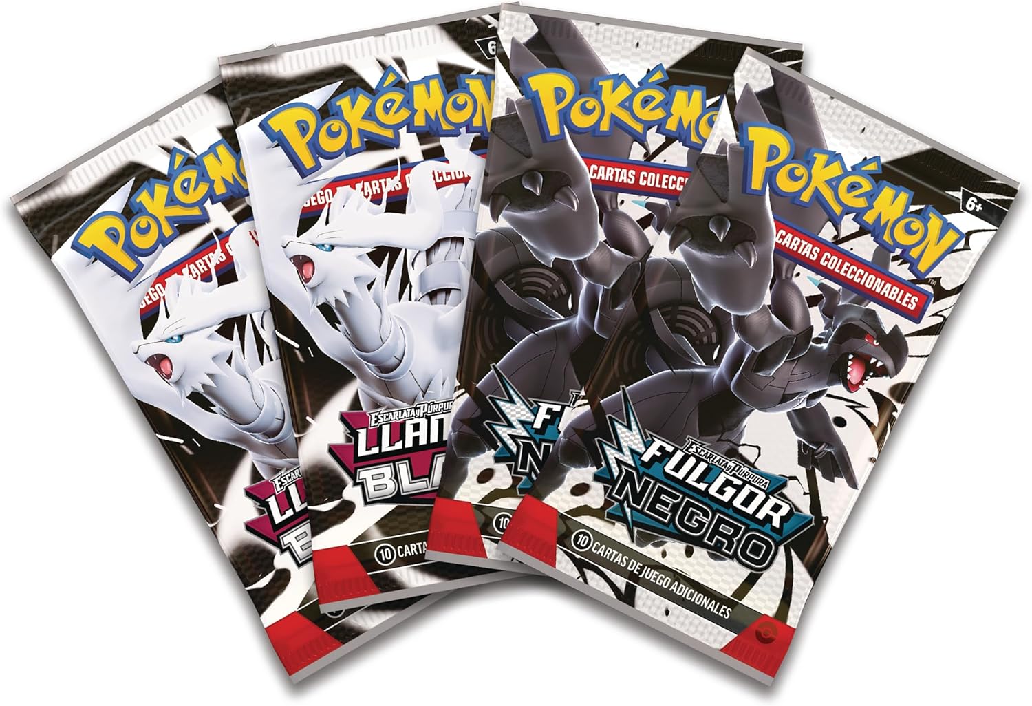 4 sobres de mejora del Pokémon TCG (2 sobres de Fulgor Negro y 2 sobres de Llama Blanca)
